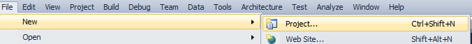 We need .NET framework (Visual Studio 20XX) to carry out web services testing using NUnit. We would need to create new Project/Solution in Visual Studio from File > New > Project (as shown in below fig)